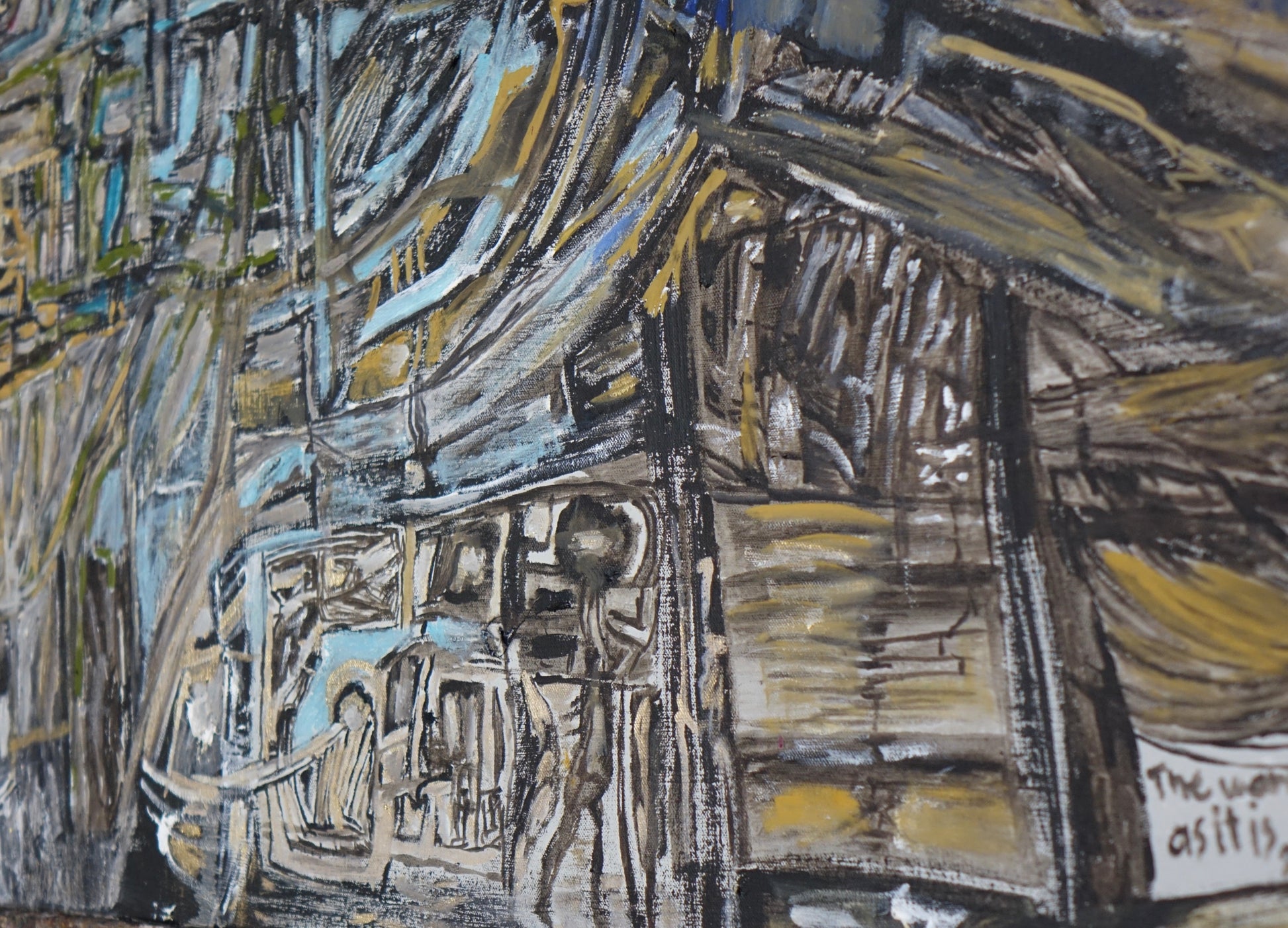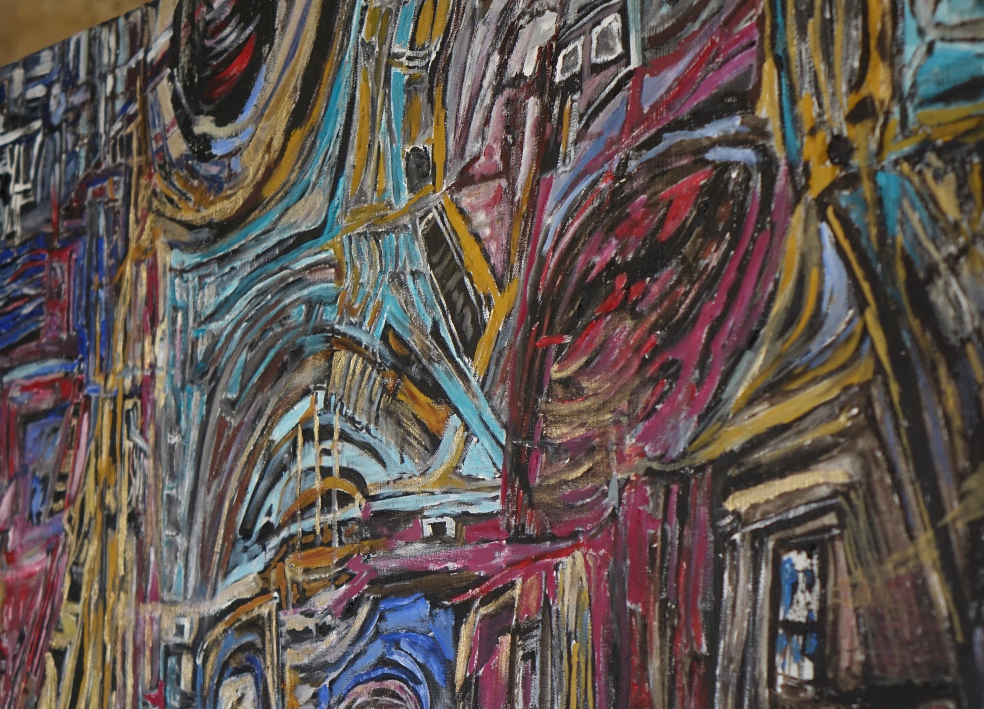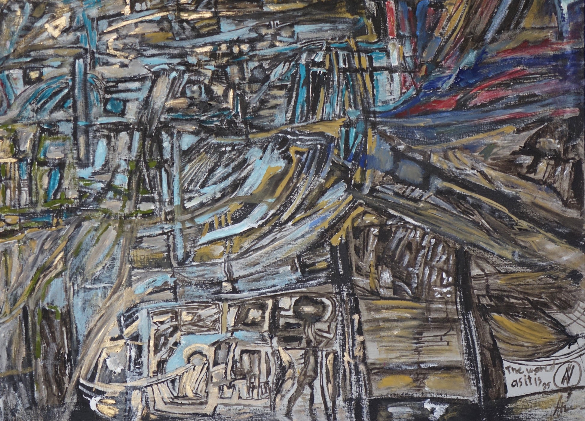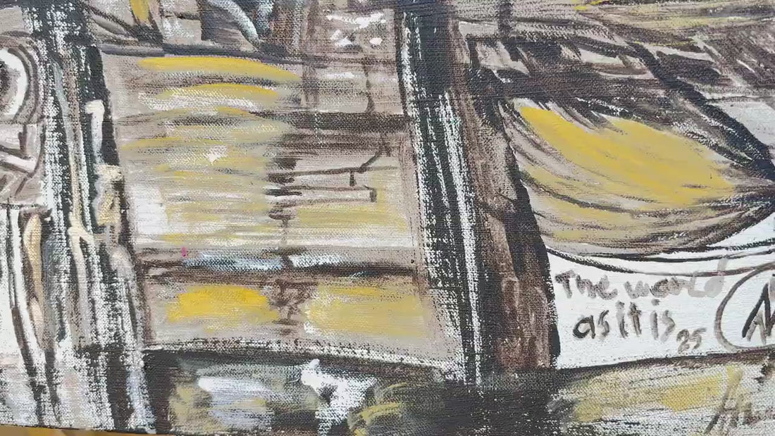 This painting confronts the layered complexity of the world we live in. With chaotic textures, overlapping spaces, and emerging faces, it captures how reality feels: dense, broken, beautiful, and alive. It’s an emotional cartography — full of fragmented systems and fragile dreams.Painted during a time of reflection, The World as It Is invites you to stand still and see everything at once — the ruins, the energy, the hope. A raw and honest portrait of our shared present.
