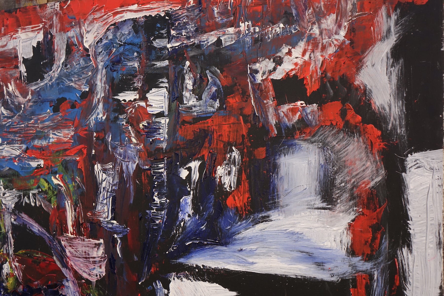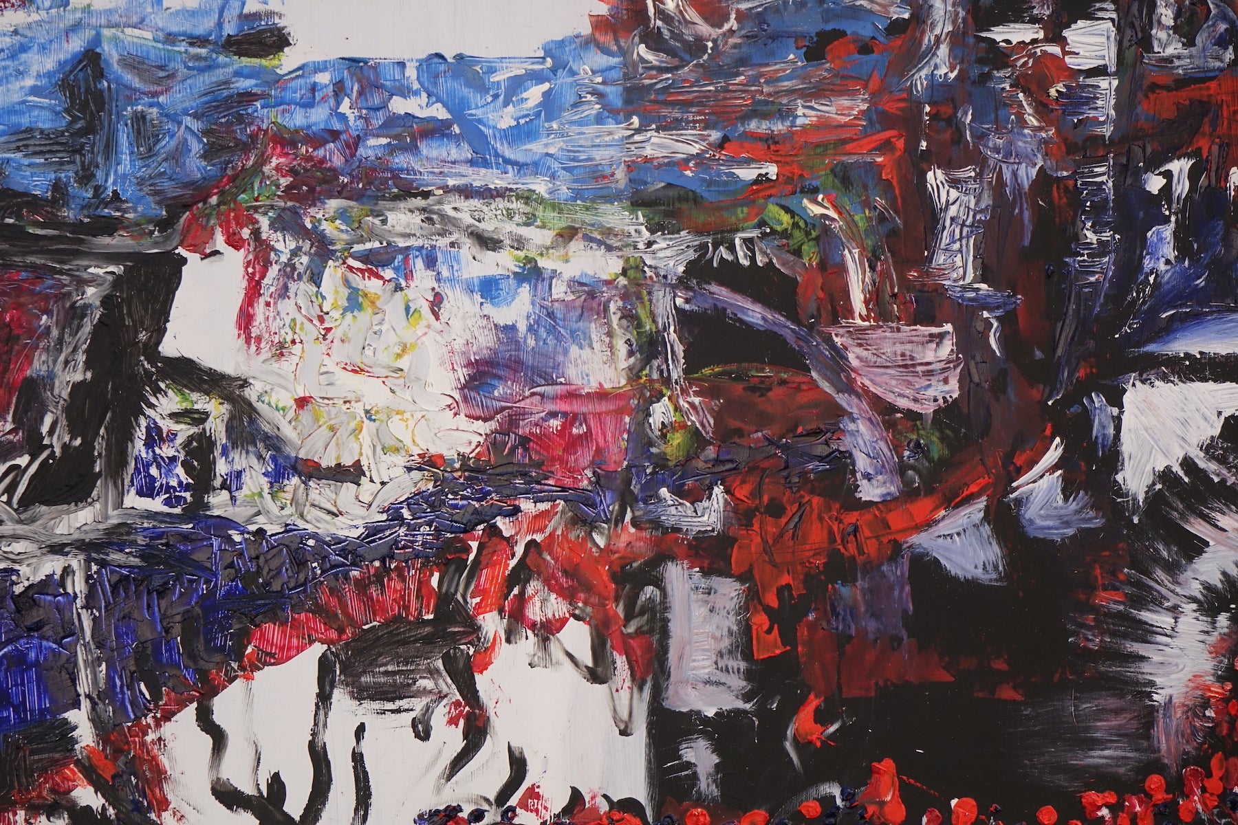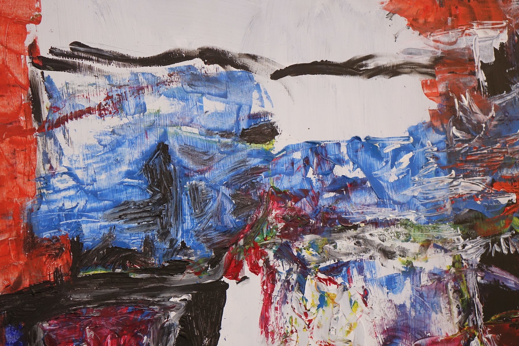 Union Jack is a bold, multi-layered composition built from four fragmented yet interconnected scenes — each pulsing with its own energy, yet joined together like the crossbars of a flag. The structure recalls the Union Jack, but instead of nationalism, it expresses the universal power of reunion and shared experience. The piece radiates vitality, with streaks of red and deep blue meeting moments of bright clarity. It invites us to gather, to reflect, and to connect — a visual affirmation that when lives intersect, something radiant always emerges.